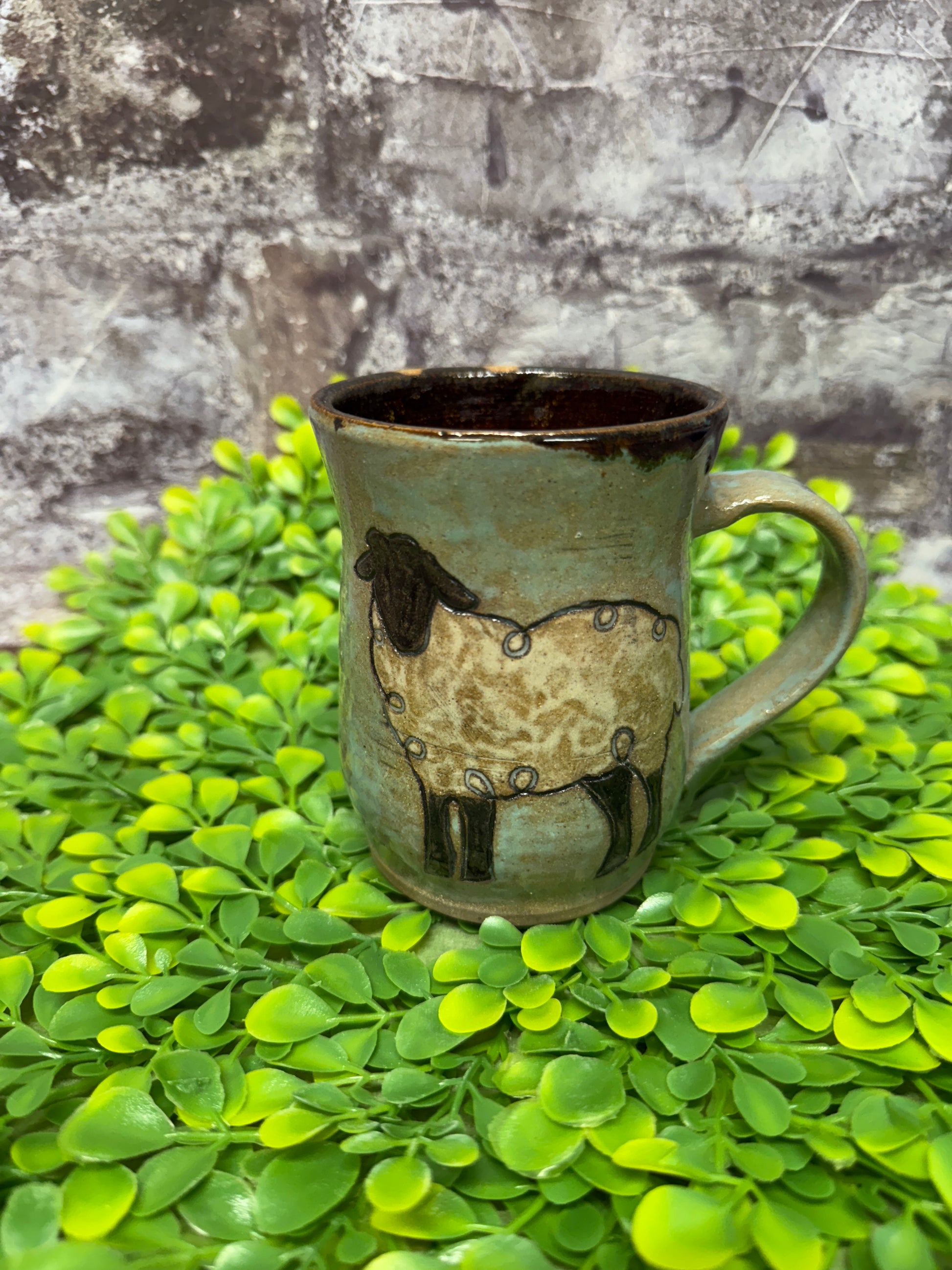 Sip your coffee on the back porch with our Black Faced Lamb Mug. Hand painted with a vintage look, this rustic farmhouse mug is both dishwasher and microwave safe. Perfect for adding a touch of charm to your morning routine.