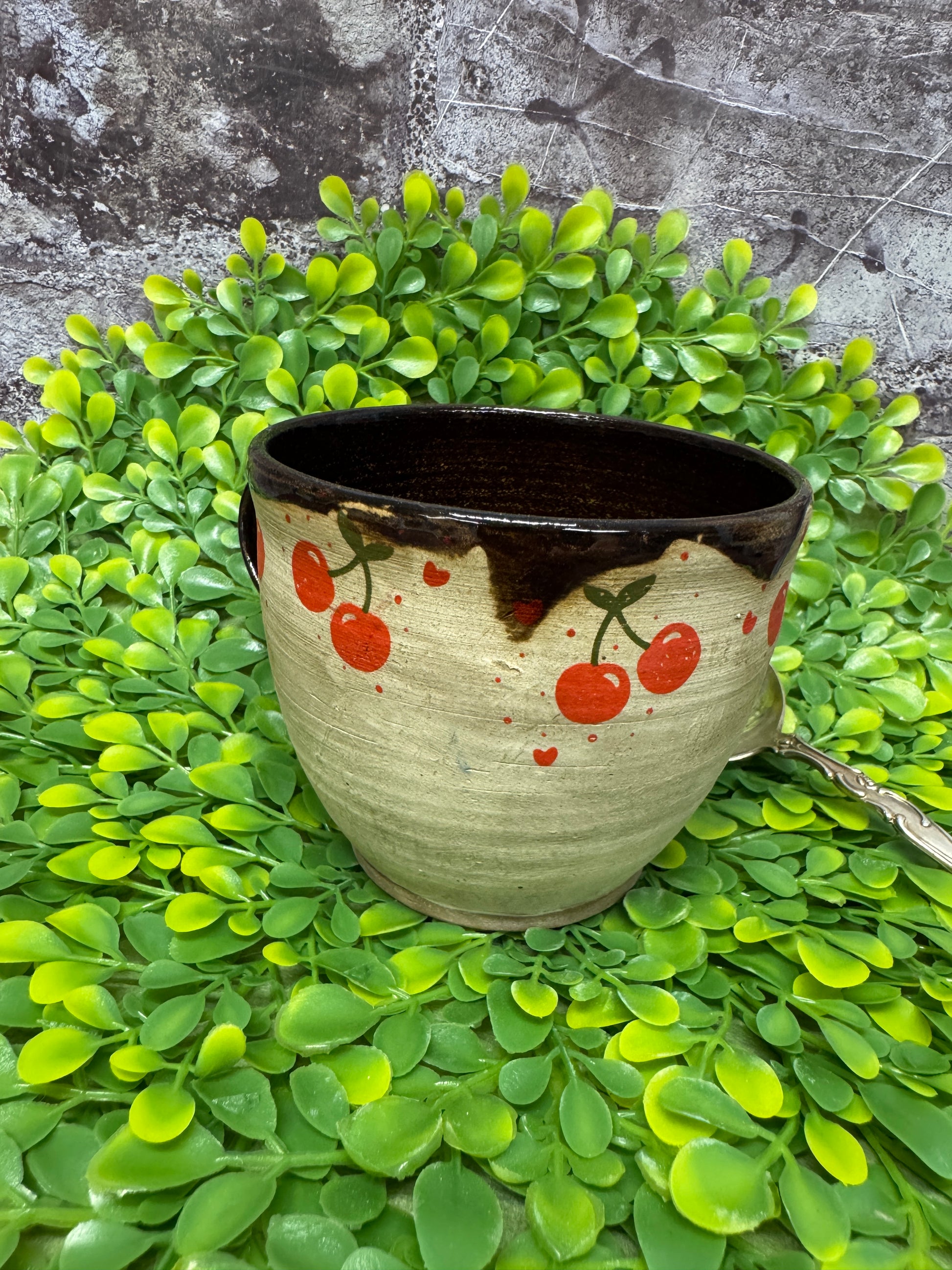 Sip your tea in style with our handmade Pig with Cherries Mug! This cute, rustic mug features a hand-painted pig with cherries on the border. A unique addition to your collection.microwave safe, hand-washing recommended.